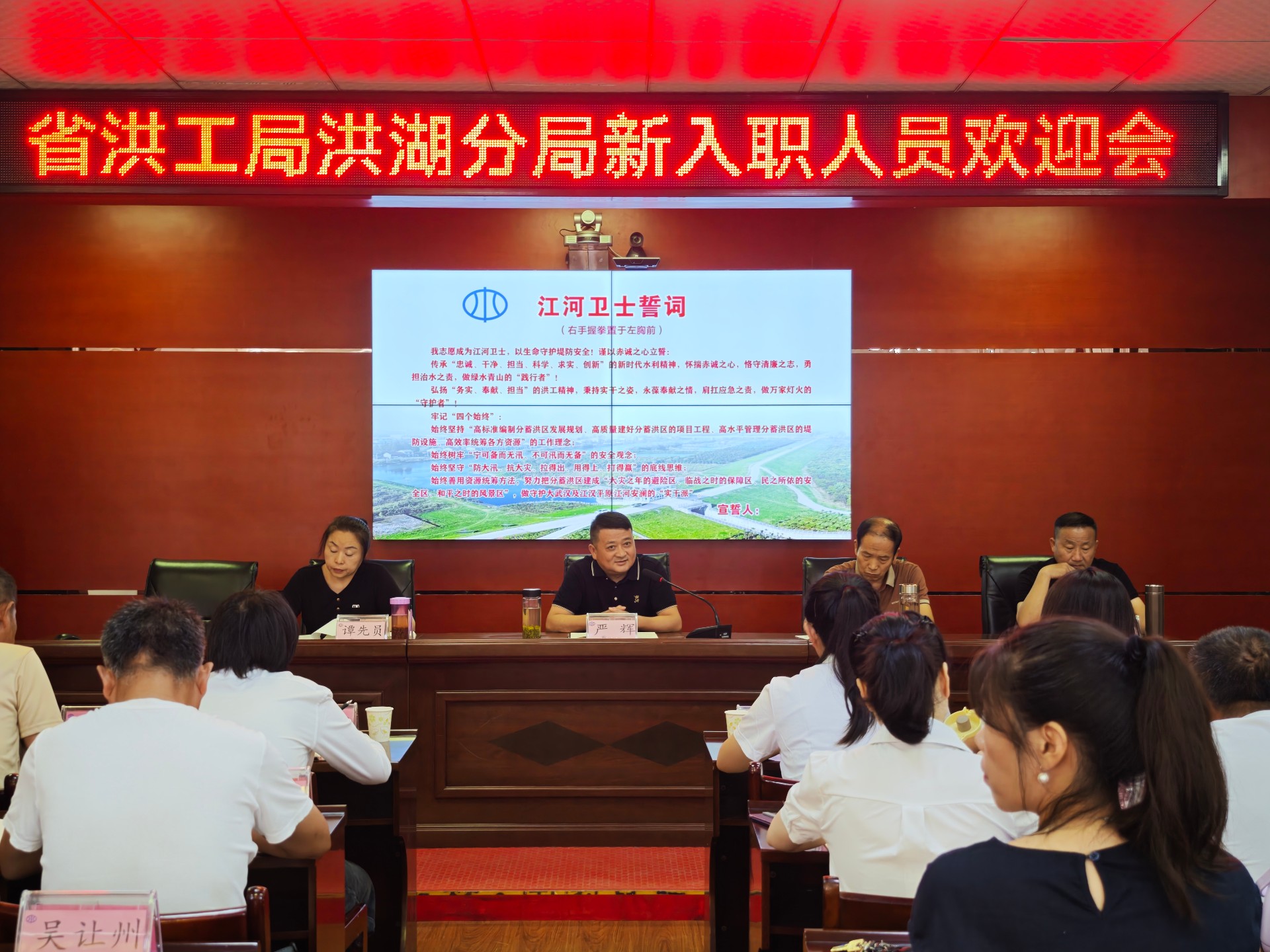 8月15日,省洪工局洪湖分局召开新入职人员欢迎会。以“系好人生第一颗纽扣 筑牢堤防安全屏障”为主题,助力新职工快速融入堤防管理队伍,凝聚守护江河安澜的新生力量。