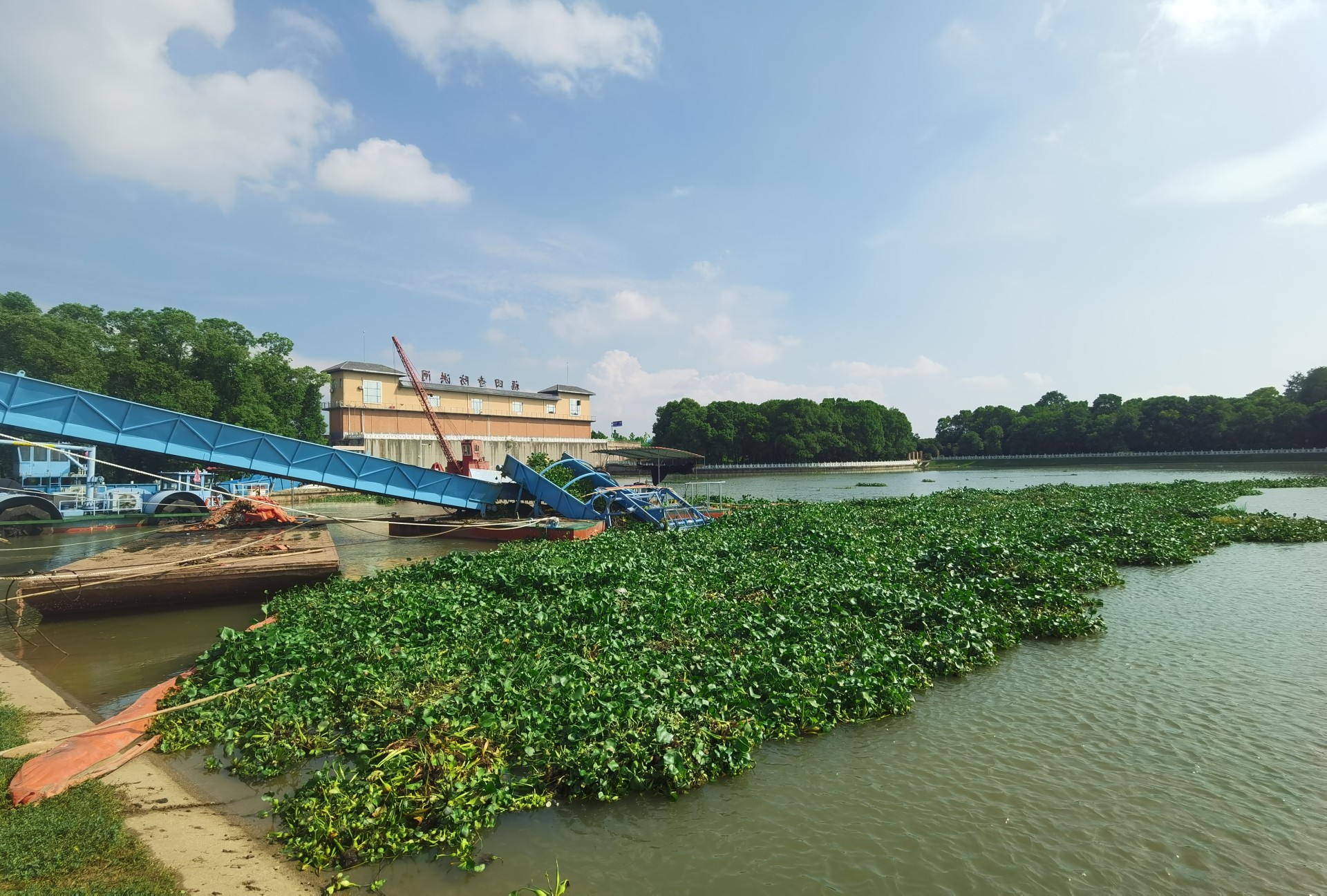 “轰隆隆,轰隆隆……”9月11日上午,在福田寺防洪闸上游闸口,打捞人员正操作机械、协同配合,有条不紊开展水葫芦集中打捞作业。