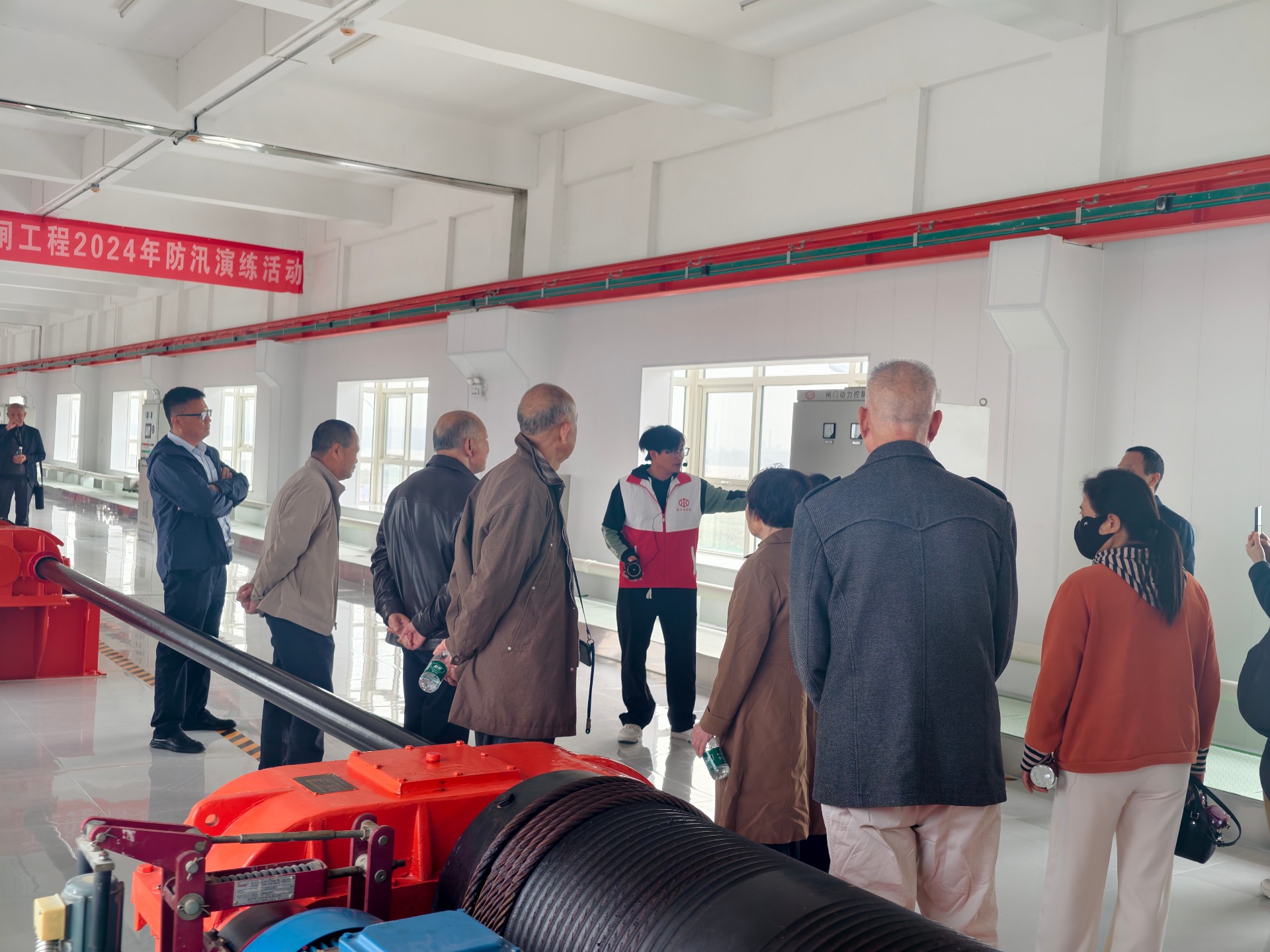 在“长江干堤第一闸”——套口进洪闸,老同志们认真聆听讲解,深入了解其防洪泄洪功能、东分块蓄洪工程的其他建设成果及重要作用。面对宏伟工程,大家感慨万千,对洪工事业的现代化发展赞叹不已。